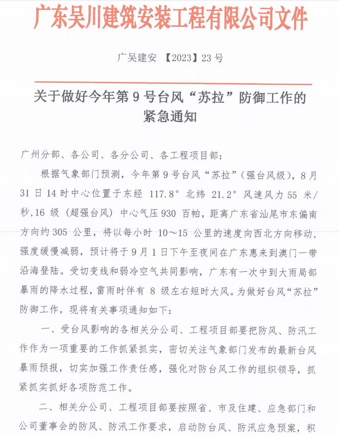 關于做好今年第9號臺風“蘇拉”防御工作的緊急通知
